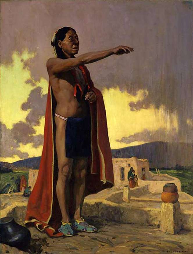 Couse was a romantic realist. His famous firelight and moonlight paintings from New Mexico were a result of his early interest in Tonalism. In 1886 he entered the Académie Julian in Paris where his training led to his lifelong focus on figure painting. From his mentor, Wm. Bouguereau, he learned the value of careful planning through the use of preparatory studies. From the naturalist painters of the period he learned the value of photographs as an aide to memory.